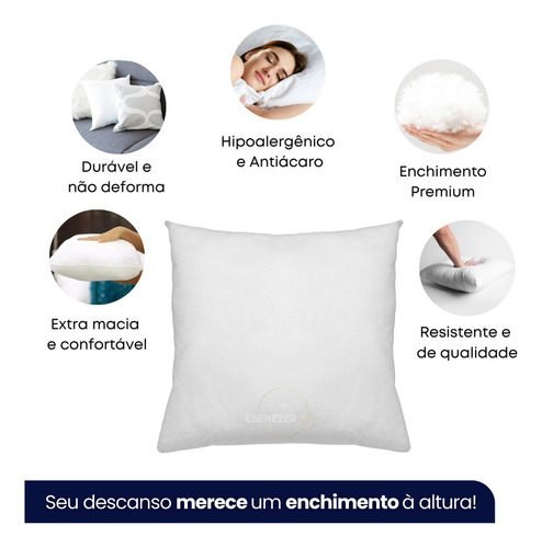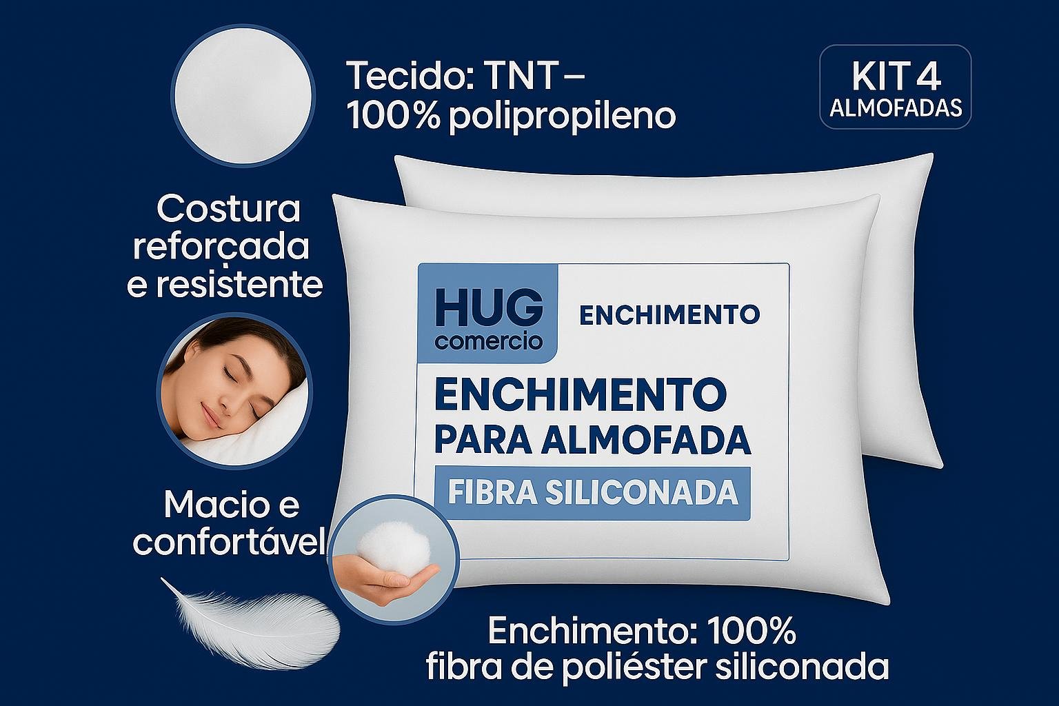 Enchimento de Fibra Siliconada: mantém o volume, proporciona maciez e sensação semelhante ao toque das plumas.